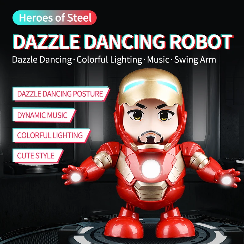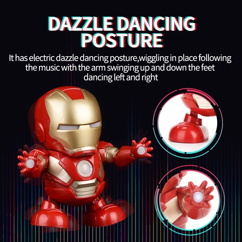 Dance Iron Man Avengers Action Figure Toy LED Flashlight Flashlight With Light Sound Music Robot Ir